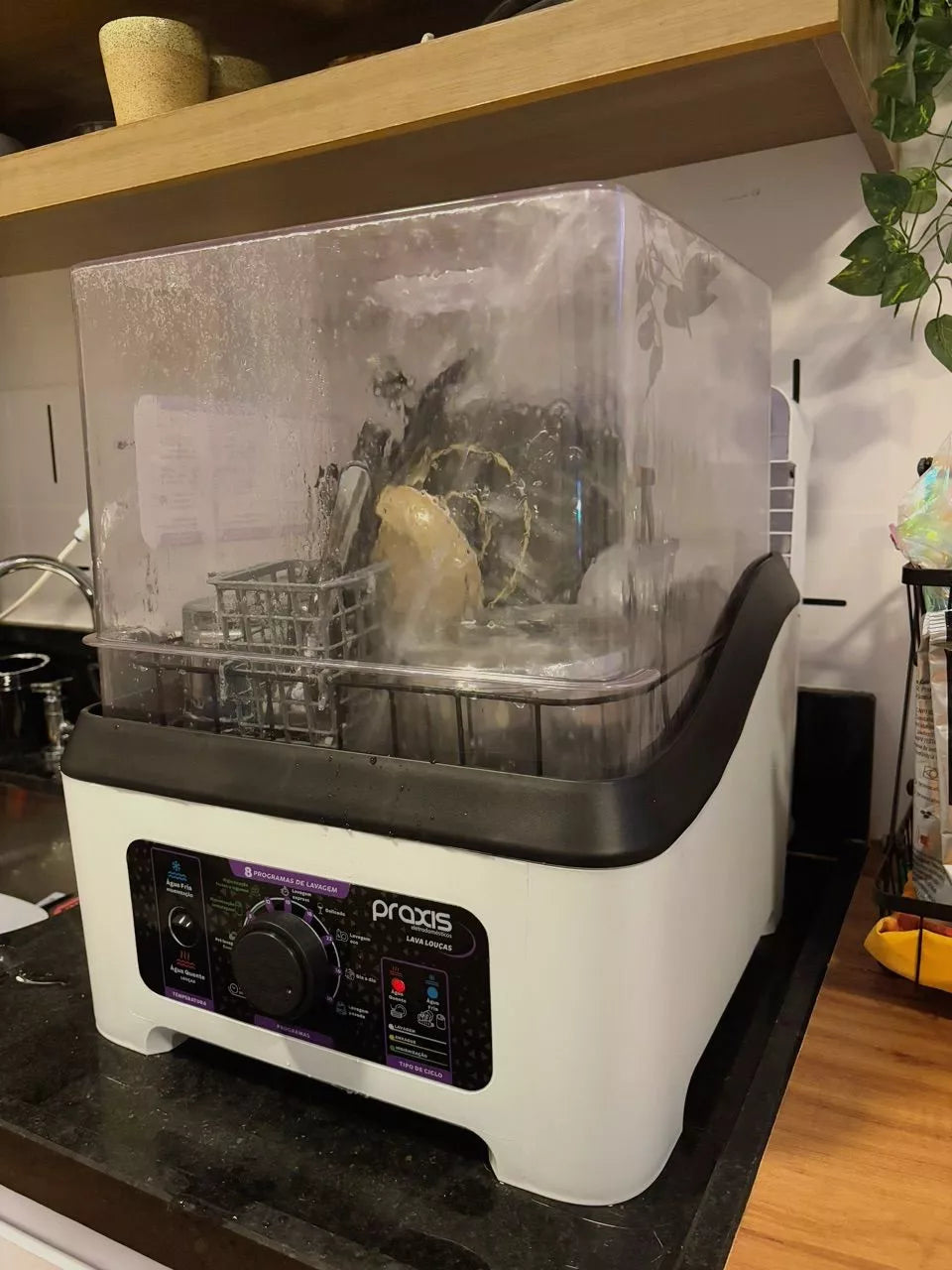 Diga adeus às pilhas de louça e transforme sua rotina com a Lava Louças Compacta 3L™.